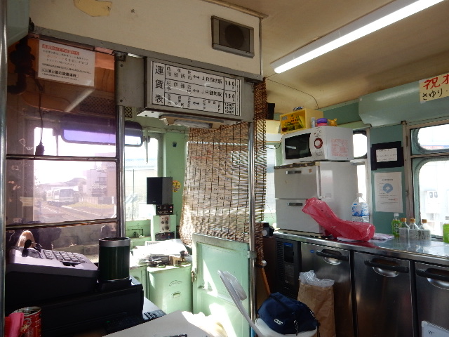 鉄道車両の中という、限られたスペースに飲食店用の器材をハメ込んで