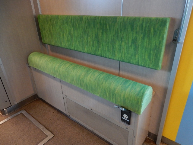 と、書いてて気が付いたのですが、網棚はありません。そして吊革も