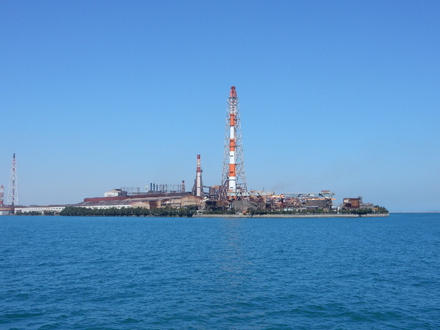 北九州、若松地区の工業地帯を横に見つつ船は進みます。