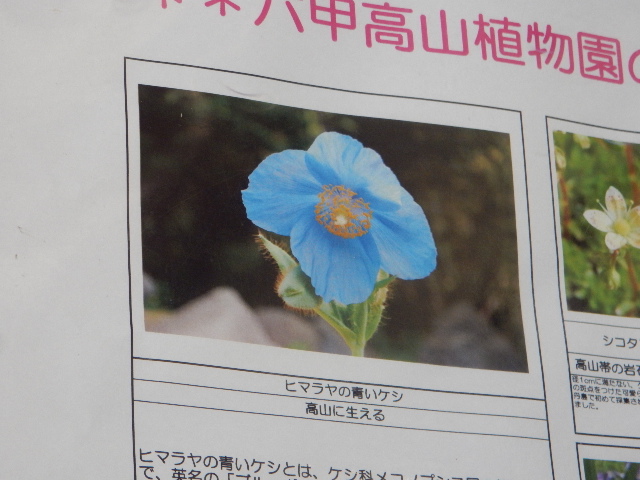 の青いケシだそうな。…お天気がイイのは結構ですが、ダレ気味の花