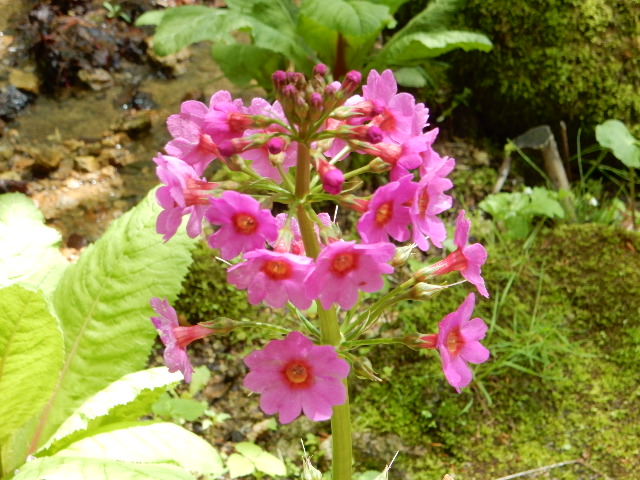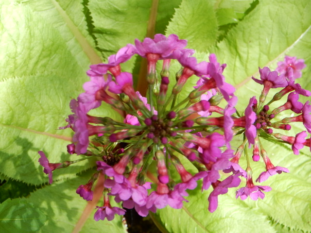 上の花はクリンソウと言うそうな。真上から見ても、それぞれの花が