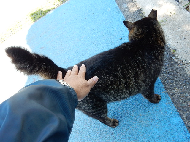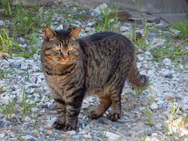 学校前の子は、コレまた大き目のキジトラちゃん。…エサやりが禁止