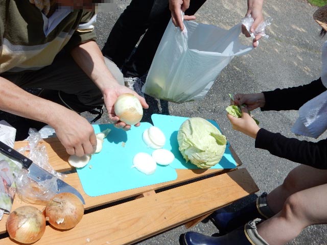 皆さんで手分けして、野菜などを切って準備して行きます。私も事前の