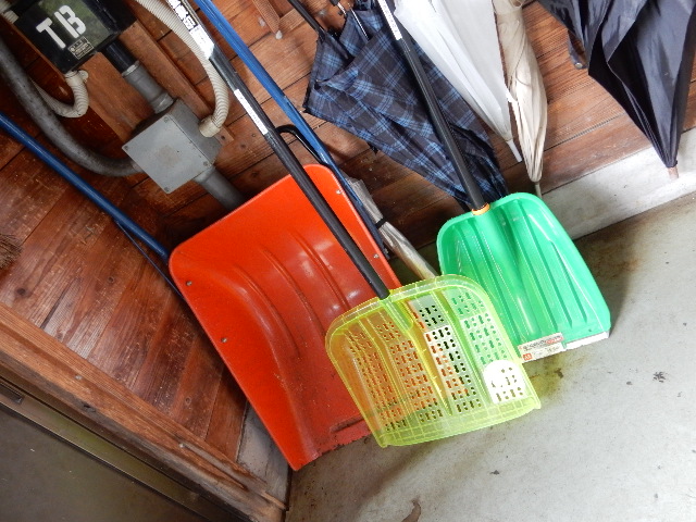 そして冬場は雪が深く積もるんでしょう、雪かきセットがありました。