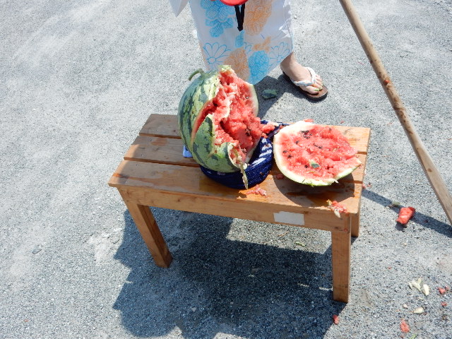 「スイカ割りを初めて見た」という小さな女の子は恐がってたりも