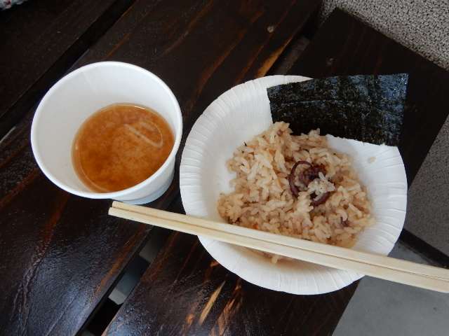 が買ってきました。味噌汁は大海駅長の提供です。