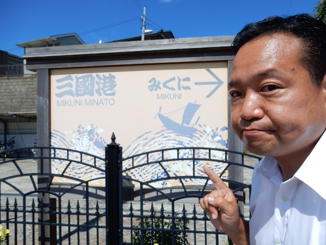 に乗り、終点の三国港までやってきましたクラ駅長です。