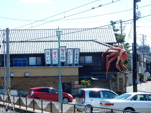 そして嫌でも目立つ、駅裏の料理屋さんの巨大カニ看板。…子供が