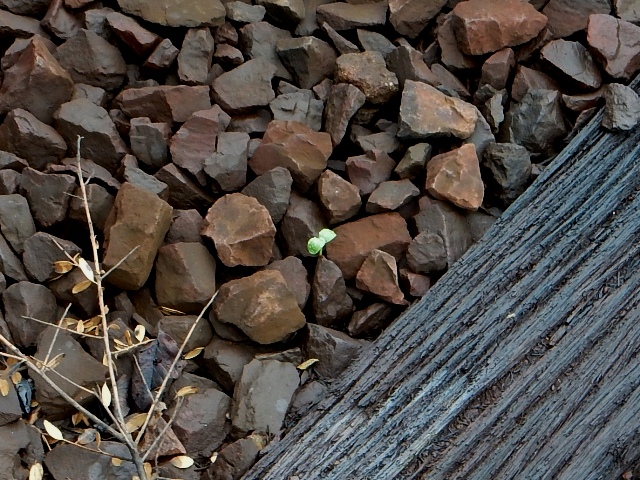 前回、枕木の隙間で発芽していた