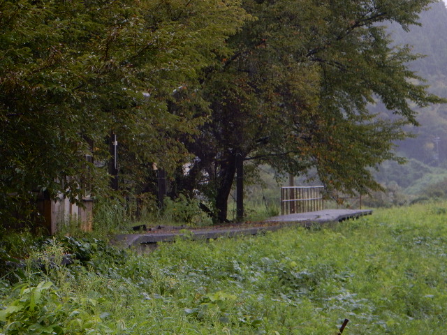 の向こうに棒線ホームの駅跡が見られました。