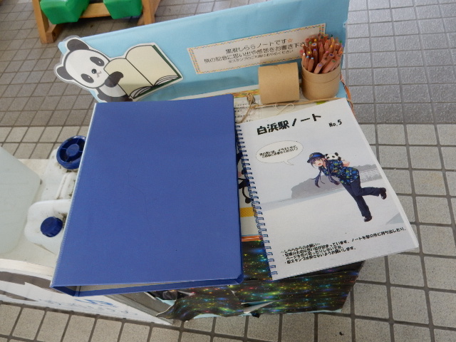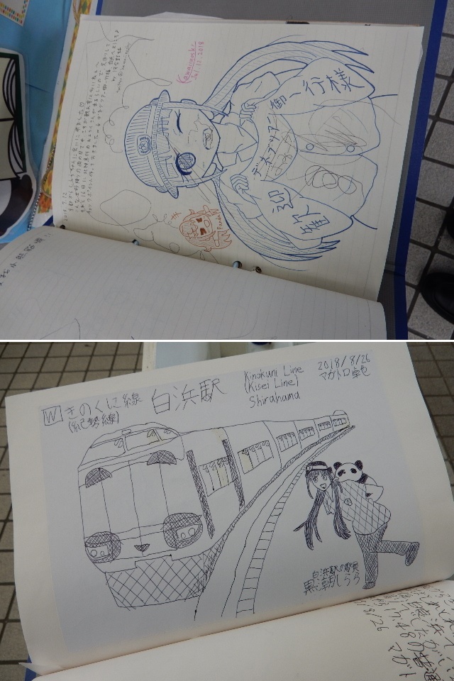 駅ノートは改札脇にあります。やはり観光地なので一般的な書き込み