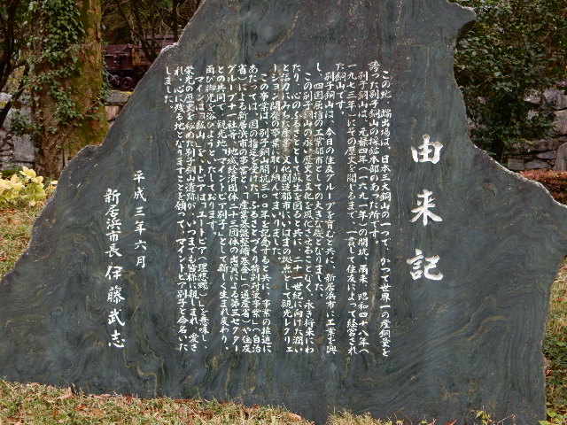 自然石を用いた石碑に「マイントピア別子」の文字がありますが、模様