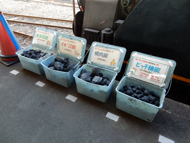 で、ホームの隅に複数の種類の石炭が置いてありました。 私はソノ辺