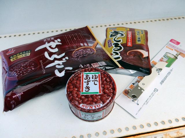 …缶詰のあずきは、今時缶切りがナイと開けられないタイプのやつで、