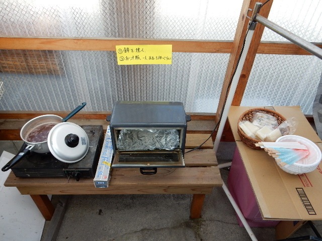 ますので、駅の里の一角に臨時の調理場を作ってぜんざいを作ります。