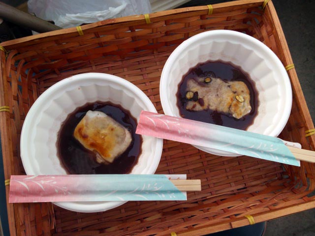 正月から余ってたぜんざいの素を持参しました。…ついでに餅も買って