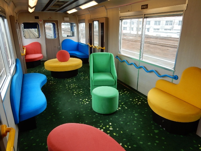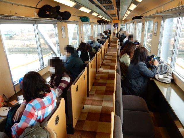 とは絨毯やモケットの色が変わりました。…乗車率は8割程度かな。