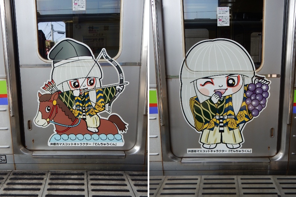 同社の車両には、それぞれ違った沿線のゆるキャラさんがラッピング