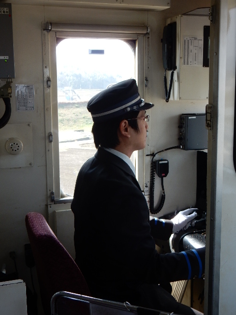 運転士さんは先程、2両並んだ車両の無駄な幕回しと自動放送の