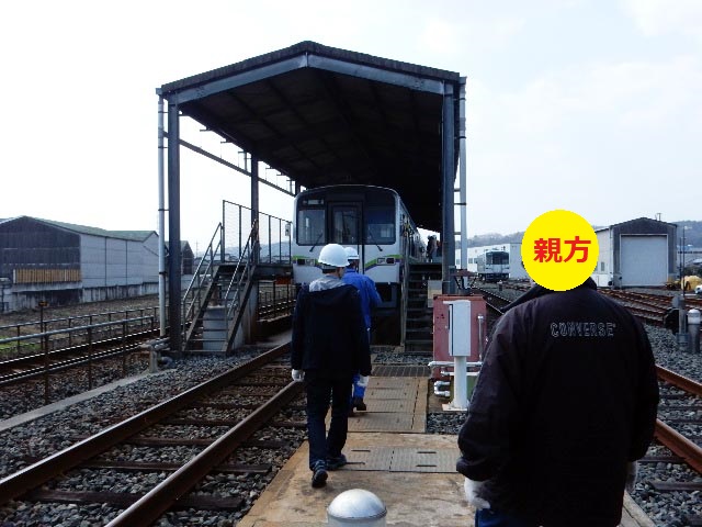 さて社員旅行です。井原鉄道の車庫での体験イベントが続いており