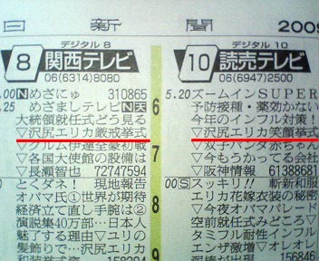 今朝の朝刊のテレビ欄です。