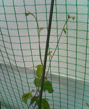 伸びたツルがネットに絡みだしました。