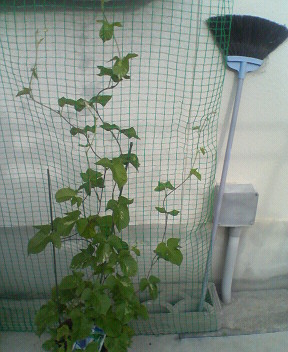 ツルがかなりの長さになってきました。 比較のためにホウキを立ててありますが。 もうすぐもすうぐ。